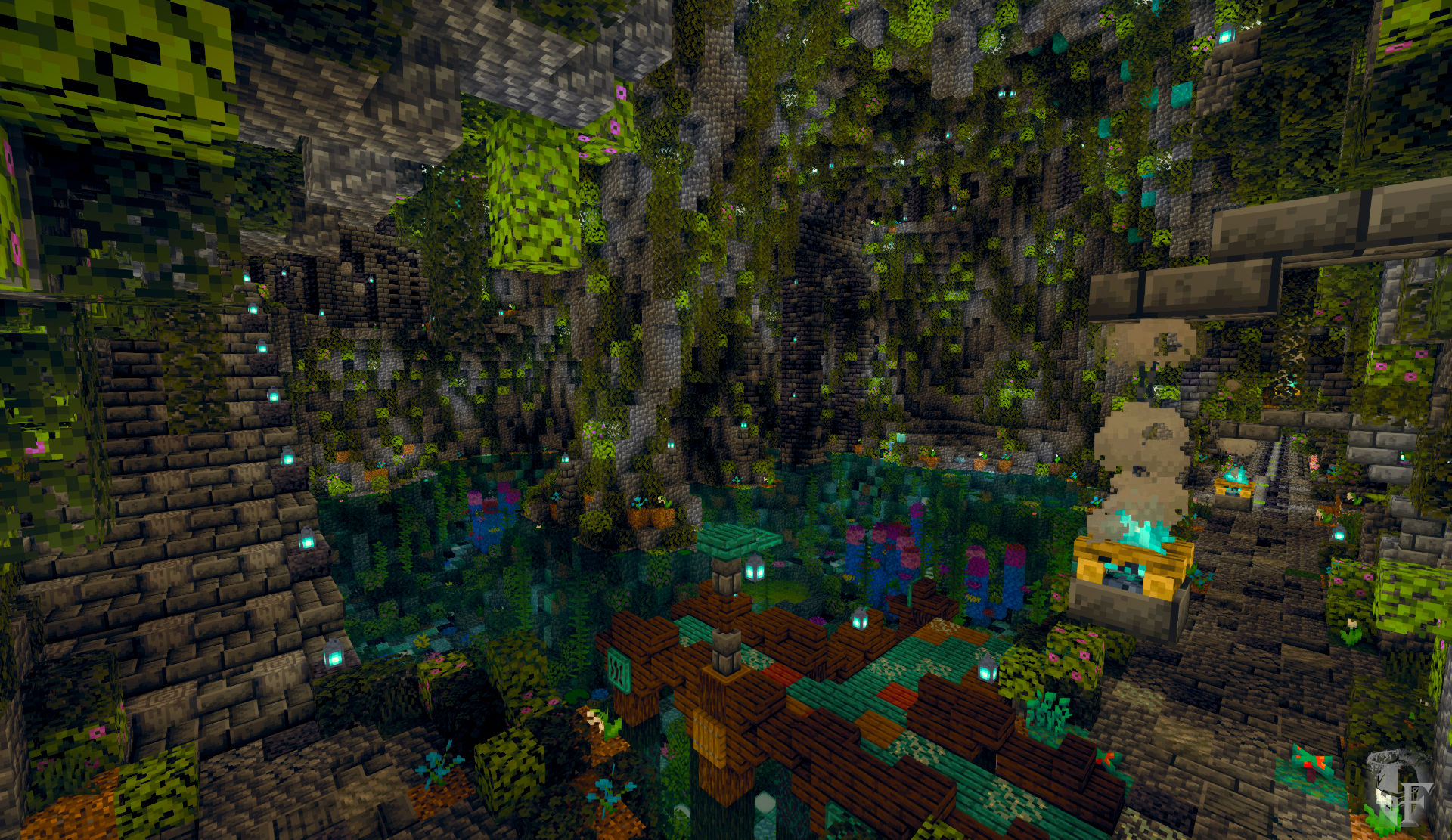 za mechovým hájem záře v oknech svítí.