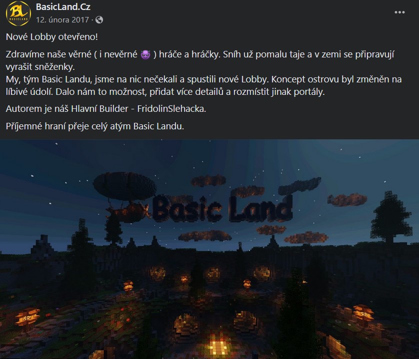 Jarní prázdniny, 2 hodiny ráno. Na serveru je pár ponocujících osob, kterým v danou chvíli přišly kostky lepší než teplo postele. Dvě z daných osob zrovna poskakují po stavitelském světě a dávají dohromady novou uvítací mapu serveru.
